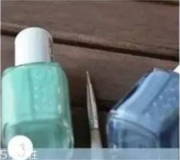 Step3 取天蓝色指甲油和水绿色指甲油用于下面的步骤,还要准备一支美甲用的画花笔。