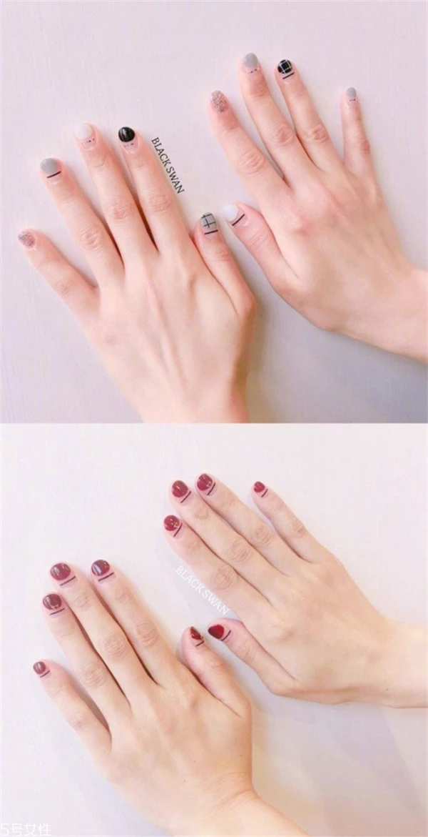 觉得之前的美甲太清淡的,可以看看这款美甲,颜色有点暗,但是却又自己的风格。
