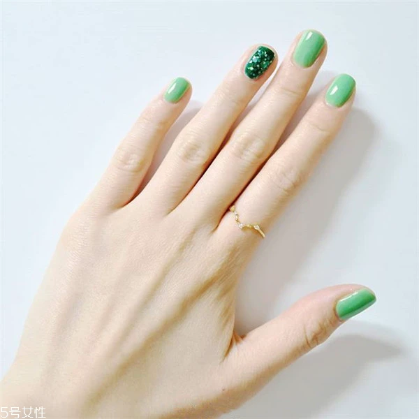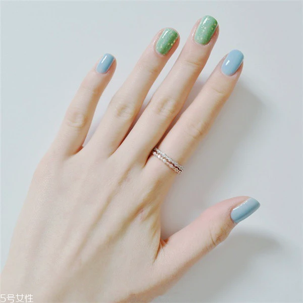 浅色系的纯色美甲也是好看到不行,加入跳色设计会让美甲看起来更显气质一些,很清新也很适合春季。