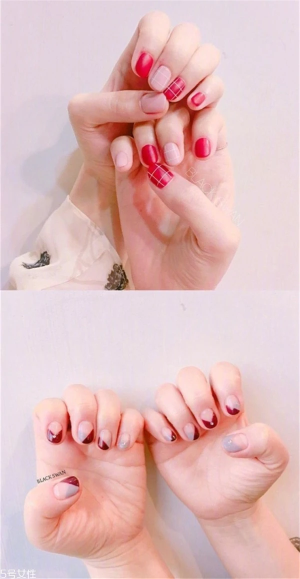 很小清新的一款红色美甲可招人喜欢了,不管是格子设计的红色美甲还是小心机设计的美甲,都十分时尚养眼。