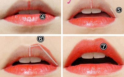 在使用唇刷的时候,要从下唇开始涂起,在画好的唇线以内,在由内往外一点点涂抹均匀。当然了,下唇涂好以后,按照同样的方法,涂上唇。