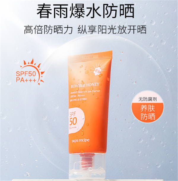 春雨防晒日常防晒真的是绰绰有余了,它是物理化学双重防晒,可以12.5小时抵御UVA、UVB。而且它不仅是一支防晒,还兼备养肤效果,蜂蜜、蜂胶、蜂王浆提取物和紫萝兰、赤蕊等花卉提取物这些成分,可以给我们的皮肤补水保湿。平时出门懒不爱化妆的话用它涂抹一层就可以出门。