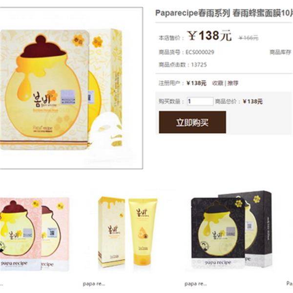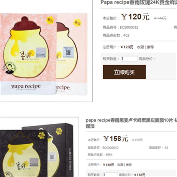Papa/Recipe/美白/面膜贴/25g,128元