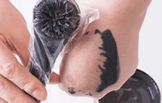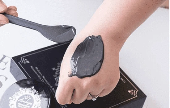 第二步:洁面后,用小勺子取适量的磁石面膜涂于面部,薄薄涂一层就可以了;