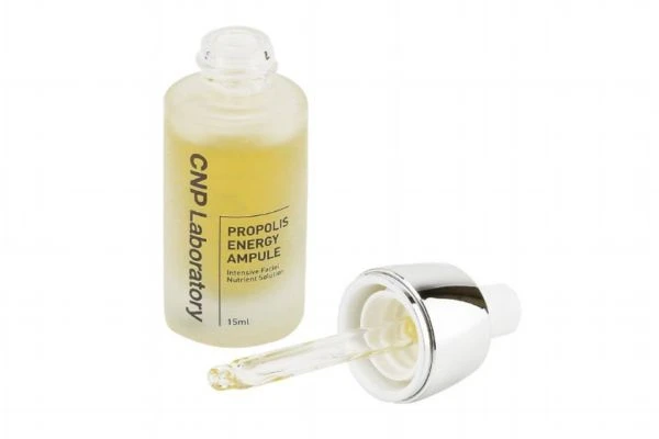 cnp蜂胶精华液主打蜂胶成分,从cnp蜂胶精华液的外观看,就很有蜂胶的特色,透明的磨砂玻璃瓶透着淡黄色的液体精华。cnp蜂胶精华液整体包装看着很有质感,滴管拿取的设计,能很好的控制使用量,还很干净卫生。精华液是胶状的质地,涂抹开很好吸收,保湿力很棒。