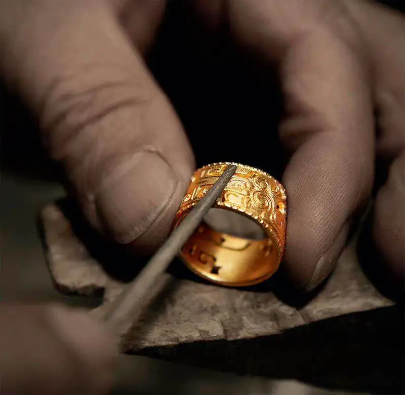 与革新者创立于2009年的老铺黄金,是我国率先推广古法黄金概念的品牌。而古法黄金是应用至少两种及以上中国传统手工制造制作工艺的足金饰品金器,具备色彩温润、外观精美雅致等特征。老铺黄金之所以与众不同,就是因为敢于以古法工艺重写行业规则。早年间,黄金饰品市场仍被标准化、工业化的素金产品主导,而2009年横空出世的老铺黄金率先提出“古法手工制金”概念,将花丝镶嵌、锤揲等传统宫廷技艺与现代设计结合,开创了古法黄金细分赛道。自此,黄金行业“以克计价”的惯性思维被打破,转而强调工艺价值与文化溢价。而通过复刻明清宫廷金器的哑光质感与纹样细节,老铺黄金成功将黄金从单纯的贵金属材料转化为文化载体,其产品溢价能力达到普通黄金饰品的数倍以上。