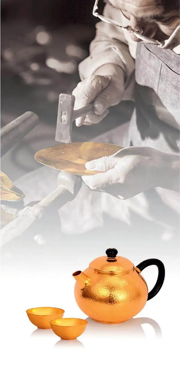老铺黄金 金胎珐琅器牡丹纹执壶套装