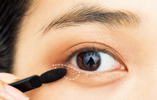 第四步:泪袋位置用哑光米白色眼影填充,以眼头为主少量带过眼尾。