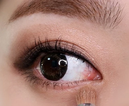 第六步:上眼尾使用深棕色和棕色眼影融合过渡自然,深棕色眼影可以增大眼睛幅度,让眼线不至于太突兀。
