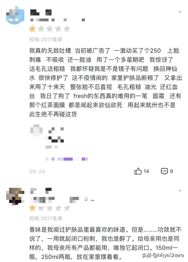 Fresh本身就是一个植物护肤品牌,调香做得很好,香味怡人、高级,肤感不错~但从成分配方上来说,真的性价比一般。
