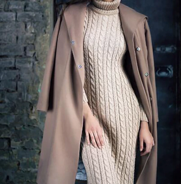推荐一:灰色大衣+浅色系连衣裙+短靴