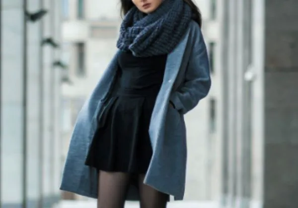 灰色大衣搭配浅色系连衣裙、短靴;深蓝大衣搭配黑色卫衣、黑色修身裤;雾蓝色大衣搭配灰色连衣裙、毛毛鞋;格子大衣搭配毛衣、半身裙。