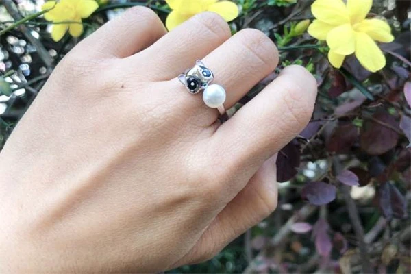 黛米戒指珍珠圆润,色泽温润。狐狸的造型QQ的很可爱,特别是还镶嵌了一颗珍珠,样式很俏皮可爱,因为珍珠的融入,又有一点知性优雅的感觉。材质是925银,很亮,做工精细,挺有档次的,戒指内有刻字,是黛米的拼音。珍珠粒大饱满,很有光泽度,和小狐狸搭配在一起挺和谐,耳朵和眼镜都有上色,不单调。