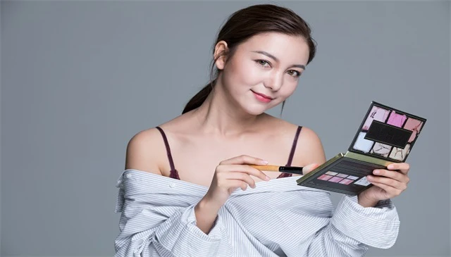 浅橘色眼影可以提亮眼部肌肤,让单眼皮看上去不再臃肿。先在眼皮处进行基础打底,最后用指腹取适量的浅橘色眼影,在眼皮处轻轻晕染自然即可。