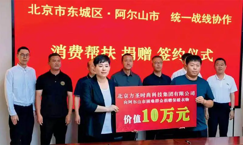 多年来,方圣集团积极参与国家“万企帮万村”计划,与西藏当雄纳木湖乡恰嘎村签订精准扶贫协议,助力恰嘎村实现脱贫摘帽;连续多年参加东城区“千户家庭送温暖”和青少年学生捐资助学活动;多次参与东城区赴内蒙古化德县和张家口崇礼区开展对口帮扶工作,签订扶贫车间、向希望小学捐赠千余套校服;多次参与湖北省青少年基金会发起公益捐助活动等。新冠疫情期间方圣集团全力支持抗疫一线,被中央电视台、人民日报称赞为“最美复工者”。