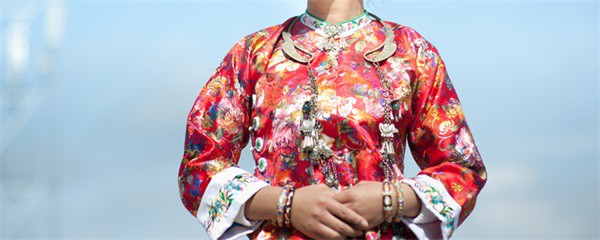 德昂族服饰特点:男子多穿蓝、黑色大襟上衣和宽而短的裤子,裹黑、白布头巾,巾的两端饰以彩色绒球。妇女多穿藏青色或黑色的对襟短上衣和长裙,用黑布包头,上衣襟边镶两道红布条,用四五对大方块银牌为纽扣,长裙上织有彩色的横条纹。红德昂和花德昂支系的妇女剃光头后又用黑布包裹,喜戴大耳环,银项圈。穿蓝、黑色对襟短上衣,襟边镶两道红布条,下摆边用红、绿、黄三色小绒球装饰。