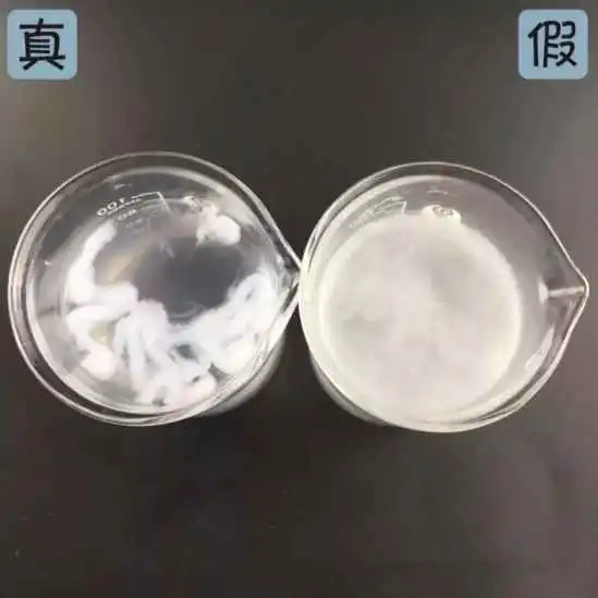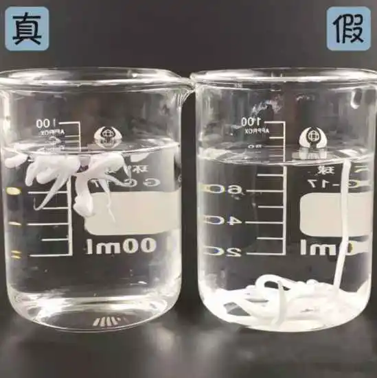 经过遇水测试,正品漂浮于水面,假货沉在水底。放置半小时,假货的膏体会明显变得透明,且水质浑浊。
