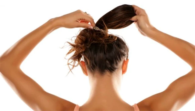 4、在进行“灯笼”造型后,将发尾的头发卷起来,然后夹上发饰,让整个发型看起来更加完整,也更加好看。