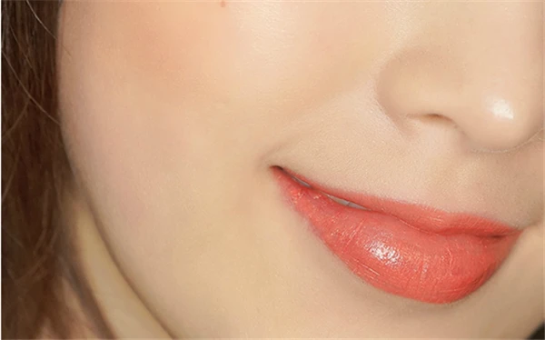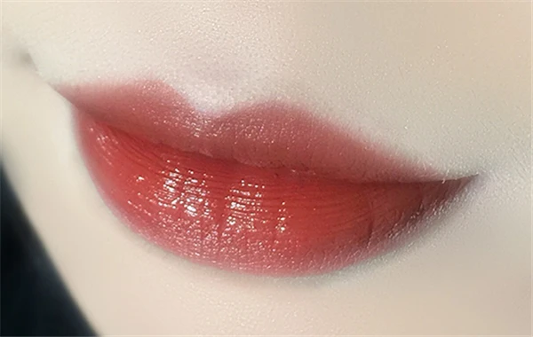 膏体看上去和普通橘红色口红没什么差别,但上嘴令人惊艳,薄涂是带一丢丢橘调的水红色,厚涂则是一大颗红番茄。发色清透质地水润,遮盖力也还不错,涂上去会有玻璃唇的效果。但时间长了表面的玻璃质地部分可能就没了,但是唇色不会有变化,不会斑驳,这点对于非哑光口红来说还是不错的。