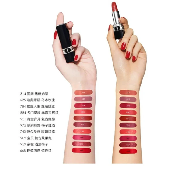 近七十年来,迪奥烈艳蓝金唇膏,妆点女性笑容,融合饱满色彩因子,一抹显色,舒悦持妆。如今,全新迪奥烈艳蓝金唇膏配方再度升级,高订色泽明亮浓郁,一如既往,一抹舒悦持色。4款高订妆效: 丝绒、缎光、哑光、鎏金,随心选择。