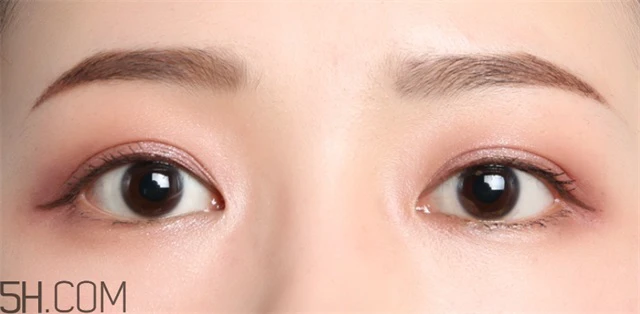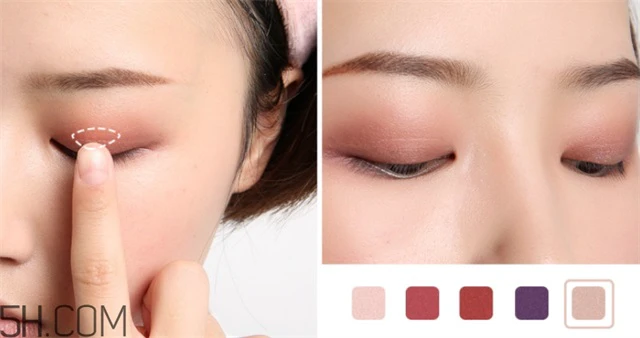 第二步用右上角的玫粉色铺满双眼皮的褶皱处~