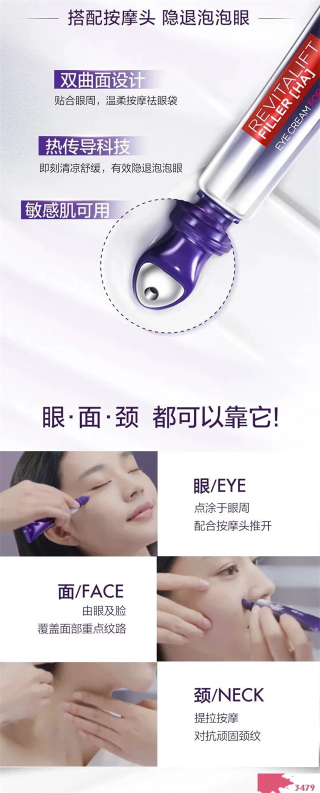 欧莱雅#第二代紫熨斗#添加全新升级的玻色因PRO,淡纹实力更厉害,由眼及颈,更快解决小“纹”题。#新一代更厉害#玻色因很厉害,升级玻色因PRO更厉害!全脸淡纹,升级按摩头!欧莱雅复颜玻尿酸水光充盈全脸淡纹眼霜。眼霜级淡纹功效,卓效对抗各种面部细纹,一支实现全脸弹润柔滑。