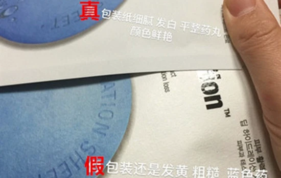 真货内包装正面的纸质细腻,颜色发白,药丸颜色较深,而假货内包装正面的纸质粗糙,颜色发黄,药丸颜色很浅。