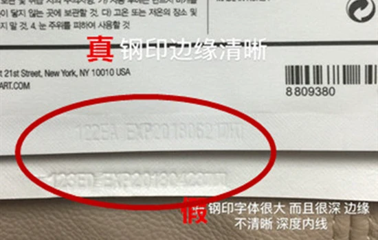 真货的钢印字体纤细,印的比较浅,钢印边缘清晰,而假货的钢印字体很大,而且印的很深,边缘不清晰。