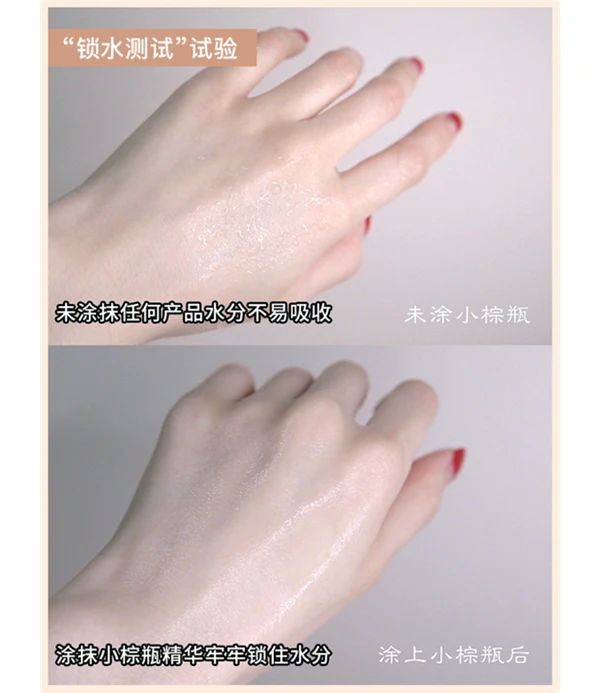 不光如此,保湿力更让人佩服,看看这个锁水试验就知道,对沙漠皮很友好: