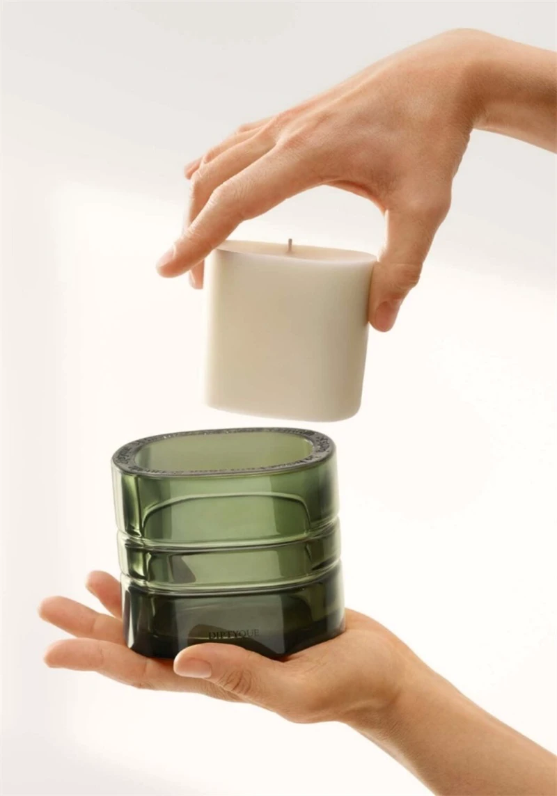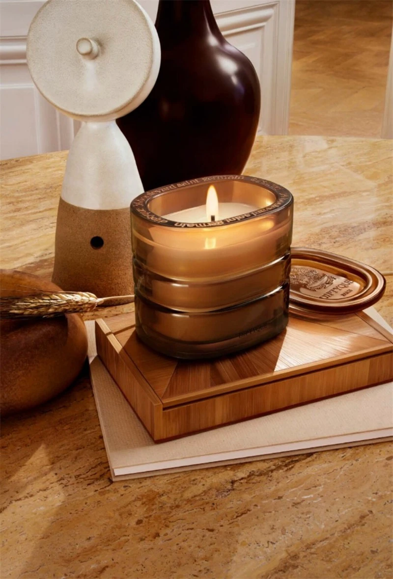 不同于以往的瓶身设计,Diptyque曾邀请为FENDI家具设计规划的义大利建筑师兼室内设计师Cristina Celestino操刀,由法国逾160年历史的玻璃工坊打造,重达1kg的厚壁色彩玻璃蜡烛杯,晶莹剔透的轮廓廓形承载流畅的弧度,杯盖上的押字以及自然线条风格尽显玻璃工艺,当蜡烛光影在最精致的瓶身中清洗,搭配5种难忘沁香,崇尚自然与人文之美,收藏于家中各个角落自成艺术品。