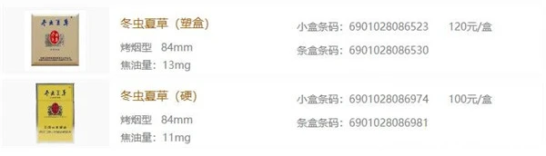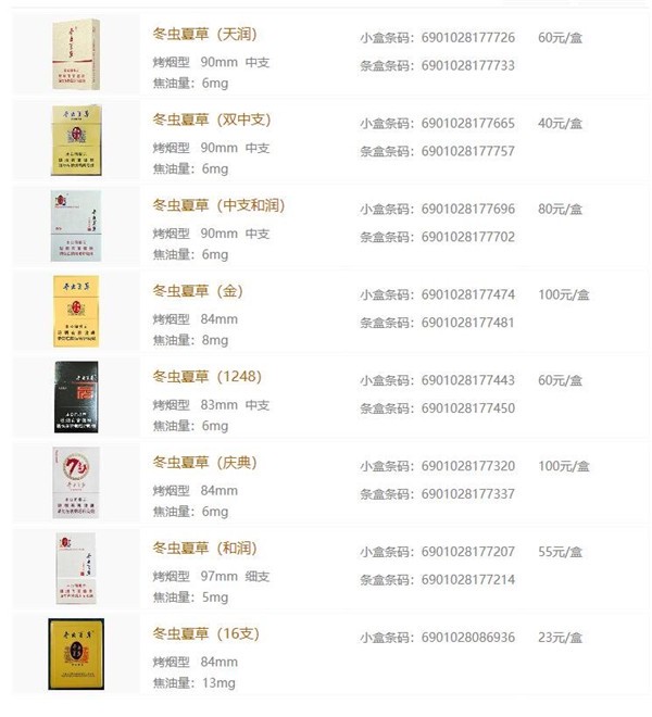 冬虫个夏草香烟有多款,价格从23元到一百都有。具体款式和价格如下: