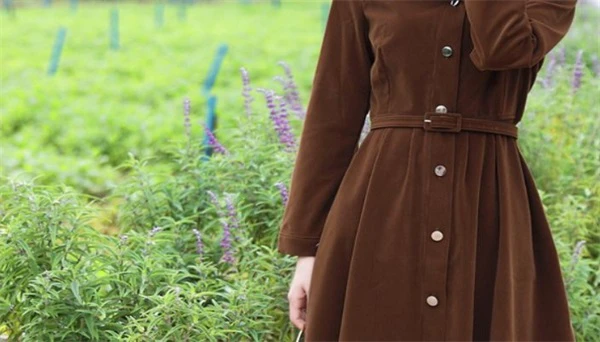 冬天穿着连衣裙时,可以搭配材质相近的外套。当我们穿着灯芯绒连衣裙时,可以搭配灯芯绒短外套。当我们穿着针织连衣裙时,可以搭配针织长外套。
