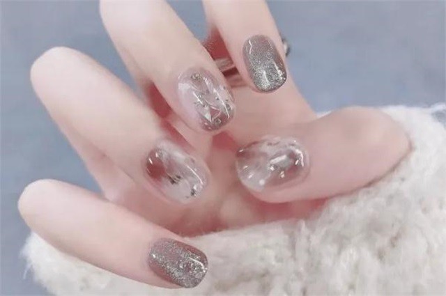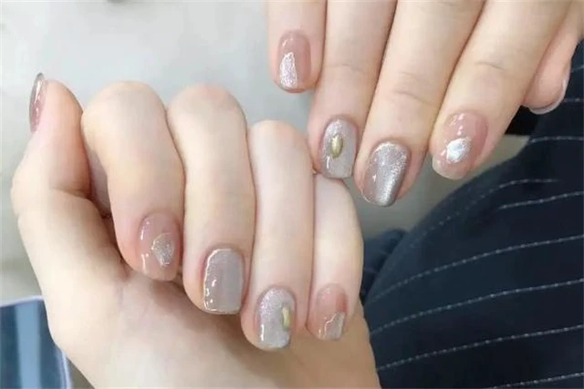 2、猫眼石美甲:猫眼石美甲有很多的颜色,每一种都如猫咪的眼睛一样的深邃,而每只手上的五个指甲做上这样的猫眼美甲就像猫眼宝石一样有质感。猫眼石粉色、银灰色实在是个少女心必备的款式,猫眼石有种独特感,可以既简约但是又有神秘感,是十分少见的款式。