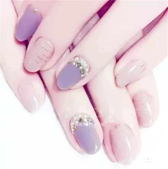 裸色配上气质紫,再搭配珍珠和闪钻,想不高大尚都不行