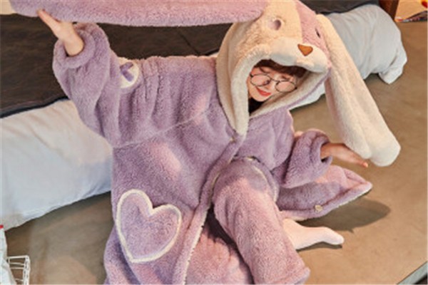 珊瑚绒家居睡衣。这款可爱的套头式珊瑚绒睡衣,穿上暖和、舒服,样式也很可爱、温馨,非常适合居家穿着。但是如果睡觉时也穿着它,就有些热了。