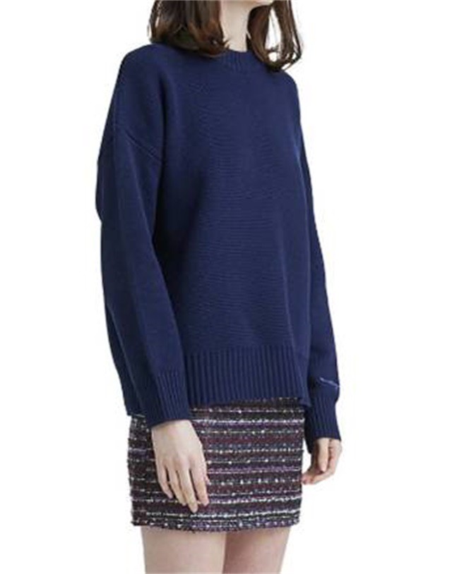 宽松版型的毛衣是现在很流行的款式,保暖又随性,这款豆沙色宽松毛衣是慵懒风的,搭配灰色、黑色或者彩色条纹的长裙都特别好看。