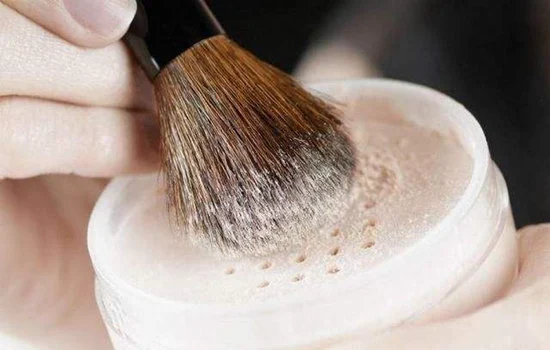 2、散粉刷沾取散粉,上脸前抖两下,抖掉多余的粉。