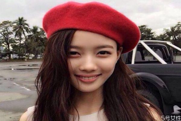 第一种:小编给大家推荐的第一种戴法是针对大脸女生的,毕竟帽子怎么戴还是要依靠脸型来的,所以小编就根据脸型的不同来推荐不同的戴法吧。首先大脸女生戴贝雷帽时,就要选择一款比平时带的帽子要大一号的贝雷帽,这是为了在视觉上增大头部的量度,让脸部在大一号帽子的衬托下显得更小。那么我们带贝雷帽的时候就可以选择稍微倾斜的戴法,这样看上去会更好看一些,然后我们可以将头发一前一后的放着,帽子低的那一边头发放在肩膀后面,帽子高的那一边头发放在胸前,将耳朵露出来会显得更有精神,然后再用头发修饰一下脸型,这样会更加显脸小,毕竟对于大脸的女生来说,没有什么比显脸小更有吸引力了。