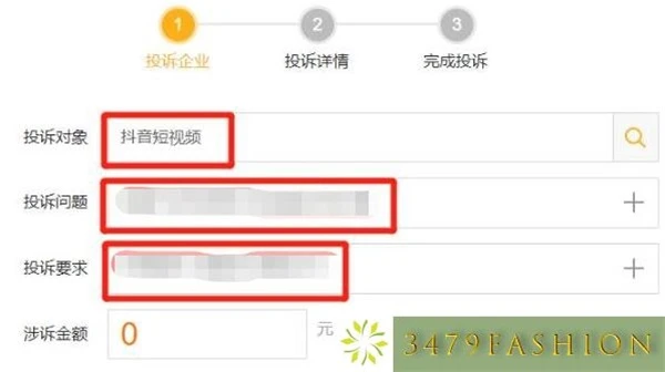 3、在新页面中如实填写具体情况,最后选择“抖音短视频”作为投诉对象即可。