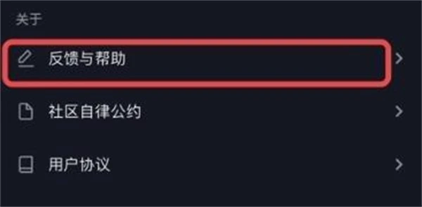 1、打开手机版抖音,进入设置页面,点击最下方的“帮助与反馈”;
