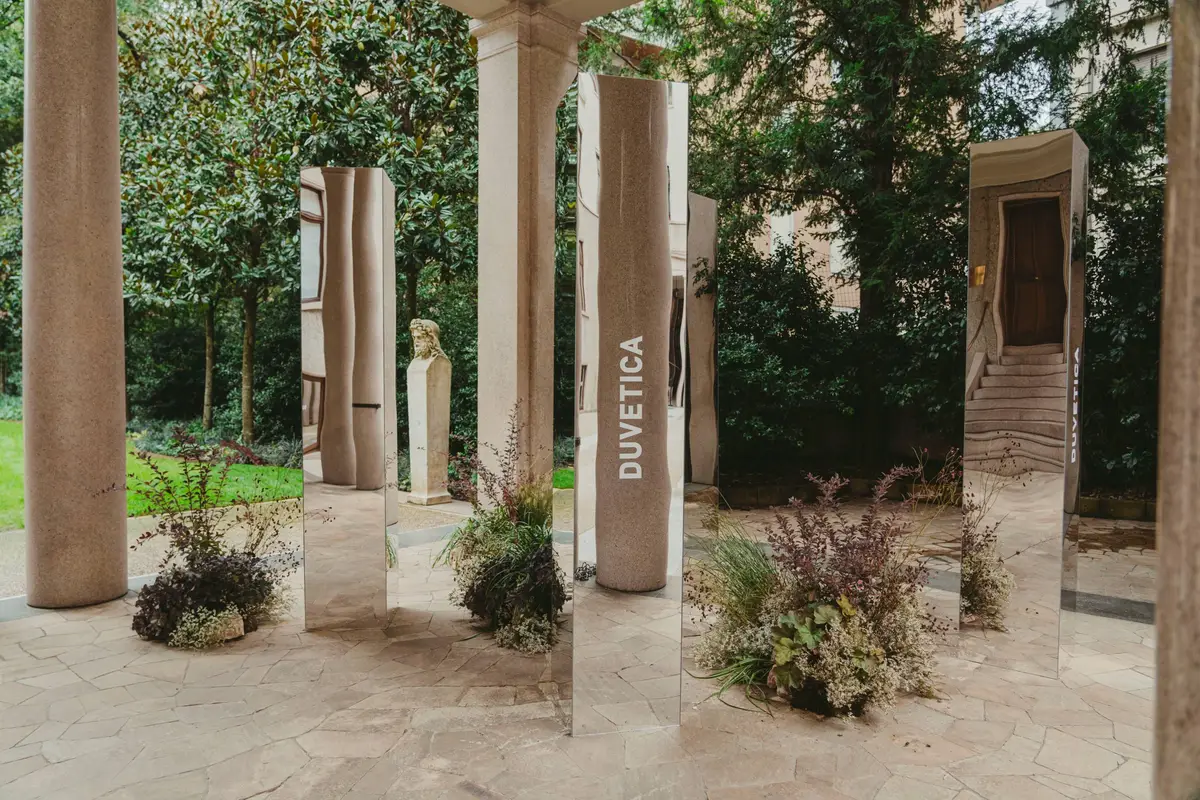 DUVETICA秉承意大利文化中对于"La Bella Vita"(美好的生活)的向往,将意式高端的户外生活方式融入品牌理念。本次2024春夏新品静态展选址米兰塞纳托花园,在严谨秩序的布局与浪漫花海之中,通过镜面装置、天幕、露营椅等装置,打造出一片全新意式露营之地。在丰富色彩的地中海灌木丛中,DUVETICA 2024春夏新品的多元色彩美学与经典意式花园的精致野趣相互辉映,令观者身临其境感受意大利闲适摩登的户外雅趣。