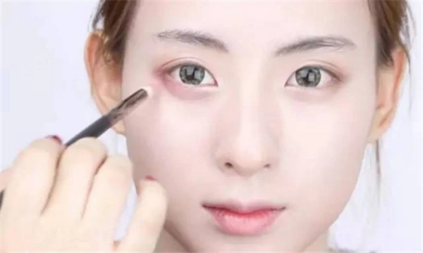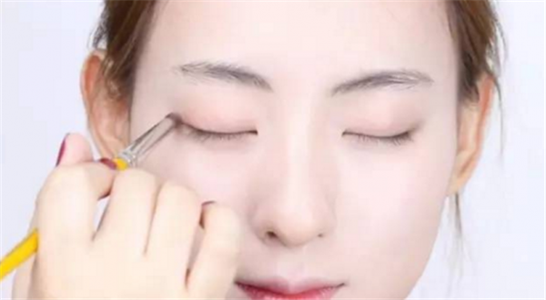 Step 3:用杏色珠光眼影在上眼皮晕染。