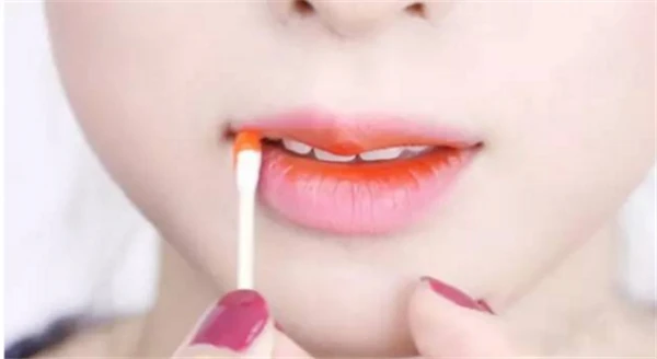 Step 10:嘴唇内侧涂上橘色染唇液。