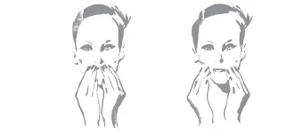 第四步:将手指放到上唇以上,将手指用力按压,并保持数到5,然后放松。继续左右嘴角。重复3次。