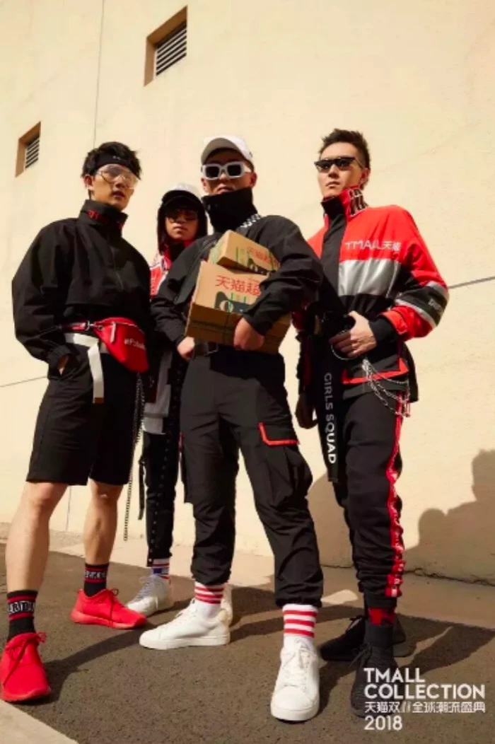 在10月20日举行的天猫双11潮流盛典上,天猫亲自揭开了快递小哥新工装的面纱,并邀请天猫员工上台走秀展示。照片上的4套新工装,由天猫请独立设计师ZACZ设计,运用了时下最流行的元素。