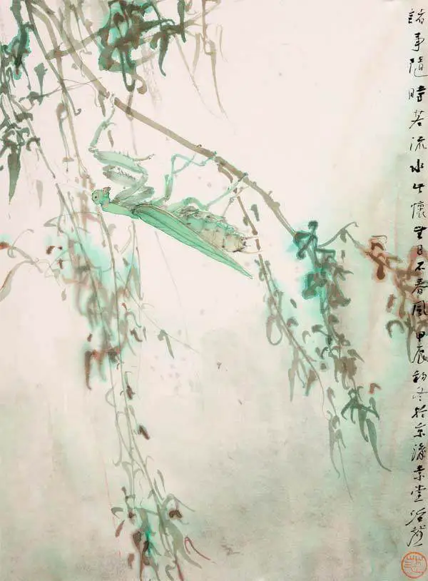 在笔墨对比运用上,范治斌精准把握画面节奏。于人物五官、花卉花瓣等精细处,以细腻笔触与严谨造型刻画入微;配景则用大笔豪放表现,如《蜻蜓图》,人物或主体花卉的精致与背景的简洁豪放形成鲜明对照,既突出主体又营造出张弛有度的画面氛围。他认为:“绘画笔墨的艺术质量是关键,造型与笔墨是一张画的两个部分,失之偏颇,都会离道远矣。我在力求严谨造型的同时,努力追求笔墨的灵动和自然。”在严谨与灵动间寻得平衡,使画面兼具写实的精准与写意的洒脱,体现范治斌对绘画整体布局与笔墨关系的深刻理解与成熟把控。