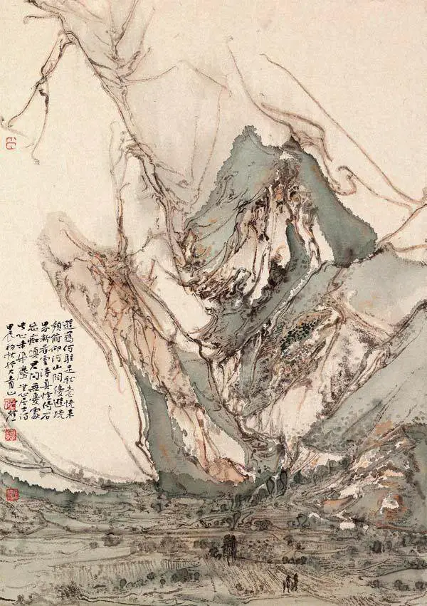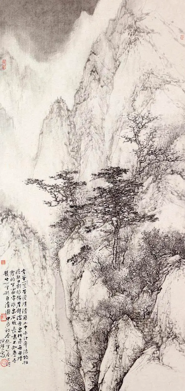 范治斌用线风格独特,偏爱细劲的线质,源于儿时树林枝丫线条的震撼记忆,经长期锤炼成就个人特色。在树的写生作品中,线条刚柔相济,如《终南山写生》的树,以灵动线条勾勒枝干,皴擦手法辅助,赋予线条浑厚苍茫之感,于简洁勾勒中展现树木坚韧生命力与自然沧桑感。范治斌谈及用线时说:“在国画里,用笔即线条,不同画者笔端会呈现不同风格及美感的线条。我偏爱一种细劲的线质,它既轻匀柔软,又力拔千斤,运用得当能在画面产生刚柔相济的美感。”范治斌对线条韵律、力度及质感的精妙掌控,使线条成为画面情感与意境传达的核心载体,承载着他对自然的诗意诠释与艺术感悟。