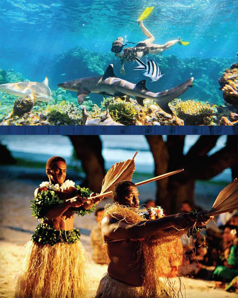 走进斐济文化村(Culture Village),亲身体验当地独特的文化、习俗和日常活动,感受到真正的斐济热情。此外,你还可能被邀请参与斐济卡瓦仪式(Kava Ceremony),沉浸在斐济人友好待客的文化氛围中。沉浸于一场充满活力的沃中心文化艺术表演(Vou Hub Fiji),领略到精美的音乐、优雅的舞蹈和独特的艺术,体验斐济丰富文化的多样性和活力,感受每一个动人的瞬间所传递的激情与魅力。观看斐济米克舞(Meke Dance),感受斐济舞者们以热情四溢的表演,展现出对自然的深切崇敬和对生活的无比热爱,令你亲身感受到斐济文化的独特魅力与丰富底蕴。
