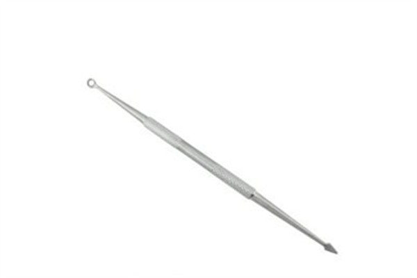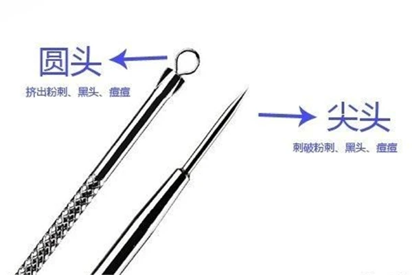 1.观察粉刺针,尖端用来刺破粉刺,圈圈端用来按压粉刺。