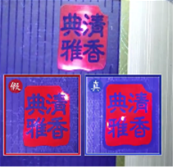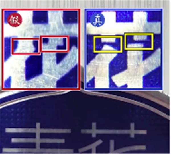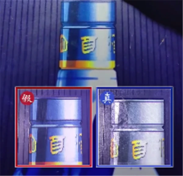 另外青花瓷汾酒20年的盒子另一边画着一个酒瓶,通过观察酒瓶的瓶盖也可以看出来真伪,正品的瓶盖上面有哑光的感觉,而仿品的青花瓷汾酒20年,这个地方看上去是普通的光色,并没有哑光的感觉。